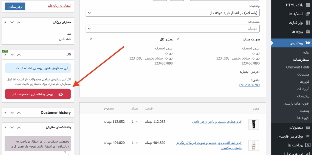از طرفی بعد از دریافت سفارش در وردپرس باید آن را در انار هم ثبت کنید که فقط با کلیک کردن روی دکمه ثبت سفارش انار انجام می شود.